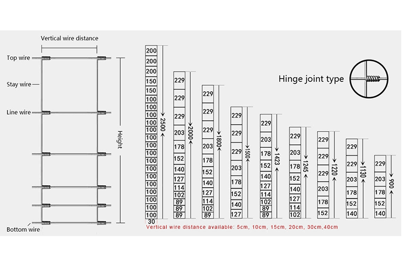 Specifications of Hinge joint knot Field Fence/Cattle Fence
