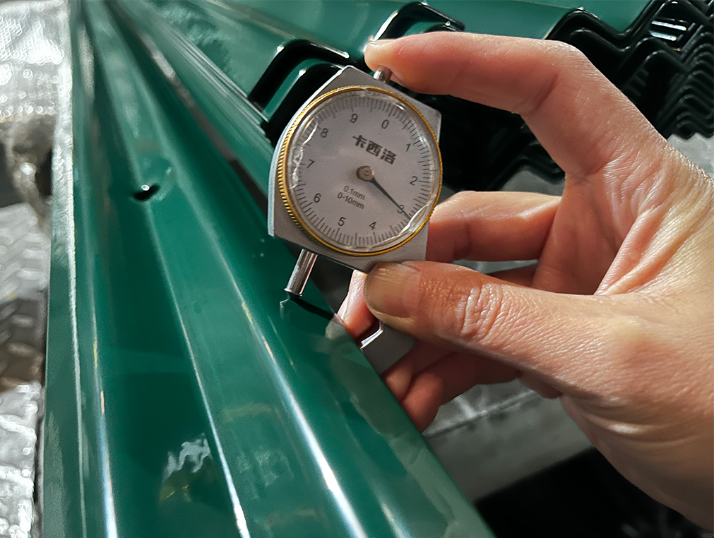 Our factory operates 2 advanced powder coating lines with an annual output capacity exceeding 80,000 meters of palisade fencing. Pre-treatment: Sanding and nano-ceramic phosphating improve adhesion and corrosion resistance. Spray Coating: High-quality AkzoNobel powder ensures excellent UV resistance, weatherability, and smooth finish. Coating Test: Each batch undergoes a cross-cut adhesion test, tape peel test, and thickness check (average 120 microns). Inspection: Every fence panel is checked by our dedicated QC team before packaging. This strict production control ensures every galvanized palisade fencing from BONKFC delivers consistent performance and appearance.