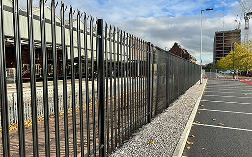 Scope: 1.5 km of modular metal + palisade fencing around large construction compound; included removable panels for access and reuse in future phases.